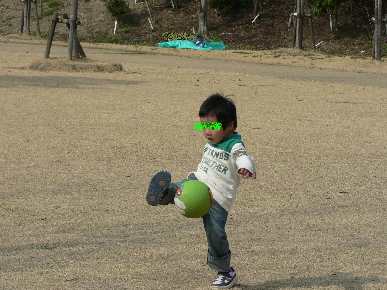 その後は、たまたま車に乗ってた、跳ねないボールでサッカー。